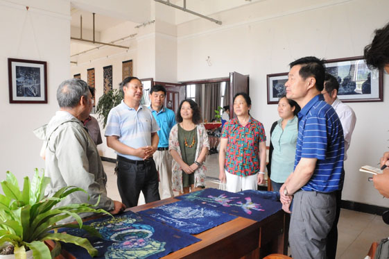 民族艺术系主任李巧云向考察团详细介绍了传习所的基本情况及“非遗项目进课堂”的教学传承情况。考察团一行高度赞扬了学院近年来在非物质文化遗产传习所建设上所取得的成绩,并特别表示“非遗项目进课堂”对培养苗绣、扎染、木雕、土家织锦、苗鼓等非遗文化的后继人才有着积极的意义,是一项重要的非遗保护举措。