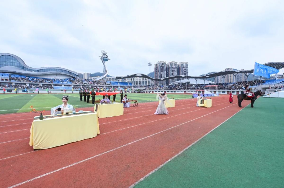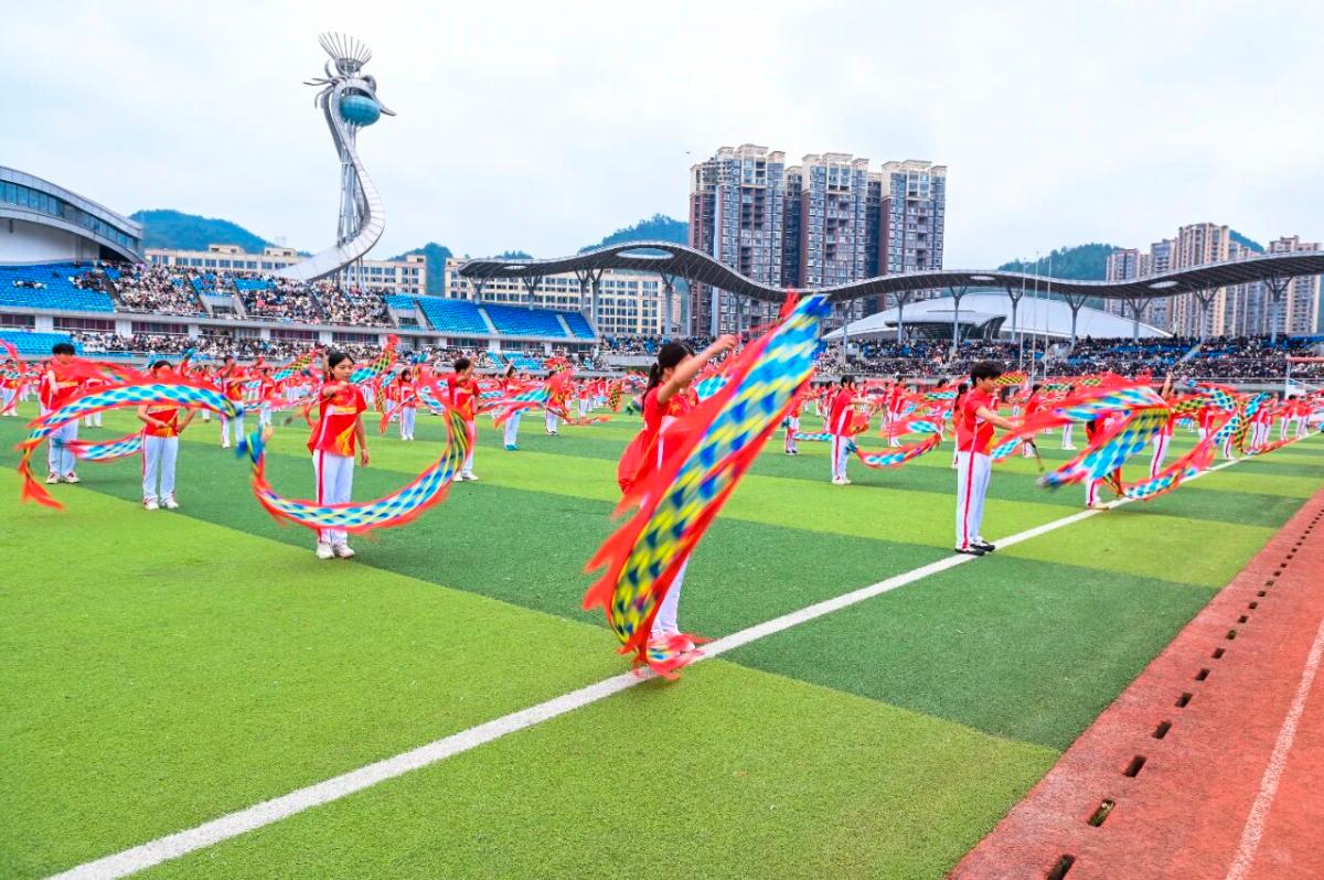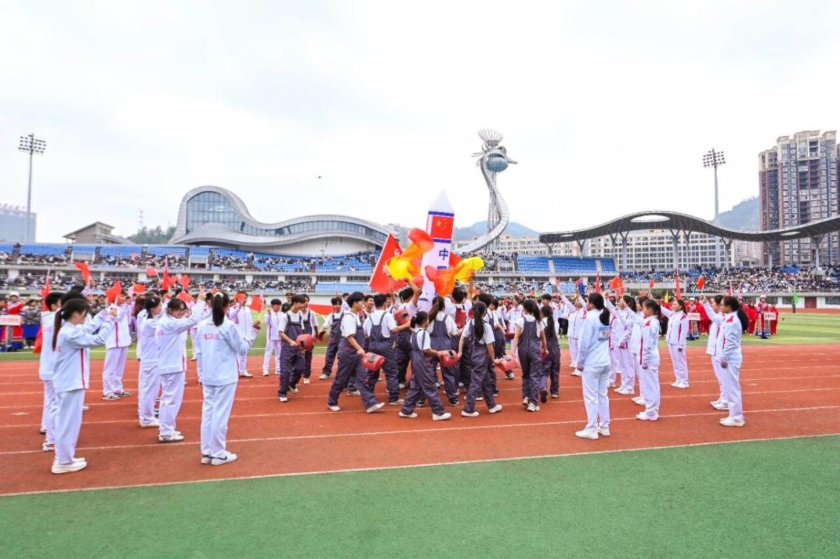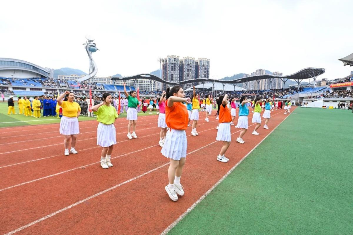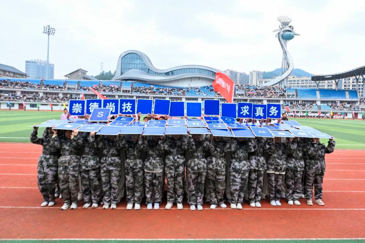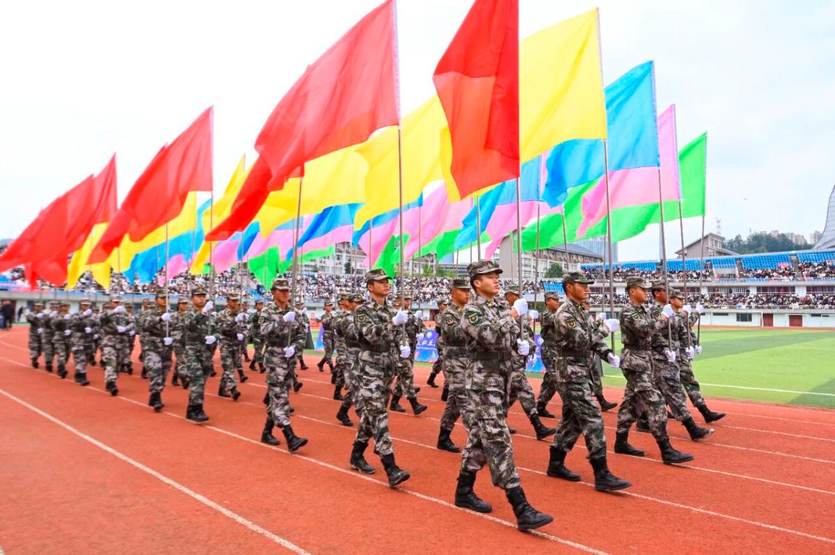 开幕式在公共课部、机电工程学院等联合呈献的舞龙舞狮表演中拉开帷幕。本次表演在传统舞龙舞狮的基础上,创新融入了湘西本土“钢火烧龙”等民俗元素,展现了中华民族传统文化中的湘西元素,赢得全场阵阵喝彩。国旗护卫队步伐整齐、神情坚定,护卫五星红旗庄严入场,学校纠察队组成的彩旗方阵与裁判员代表队紧随其后步入会场。八个二级学院结合各自专业特色,以富有创意的入场形式和精彩表演,将现场气氛推向高潮,充分展现出各学院的蓬勃朝气与育人成果。教职工代表队带来的太极表演,则生动诠释了师生全民健身、终身运动的良好风尚。