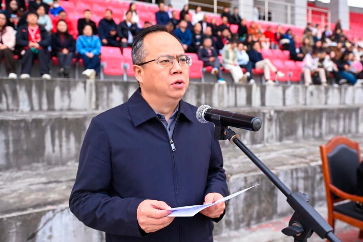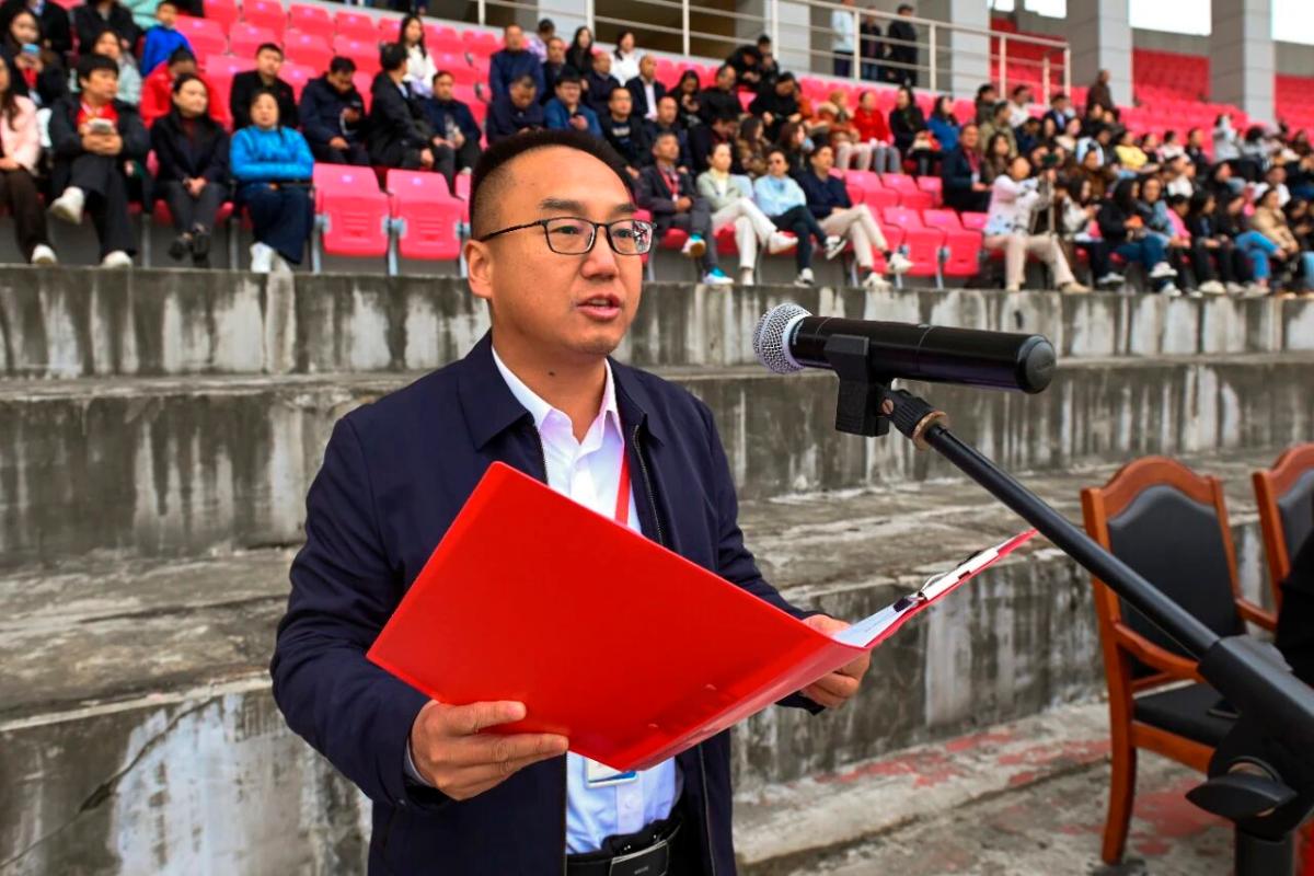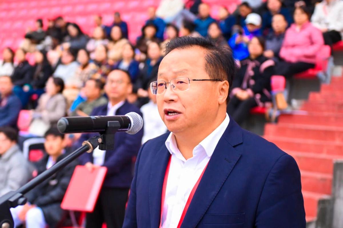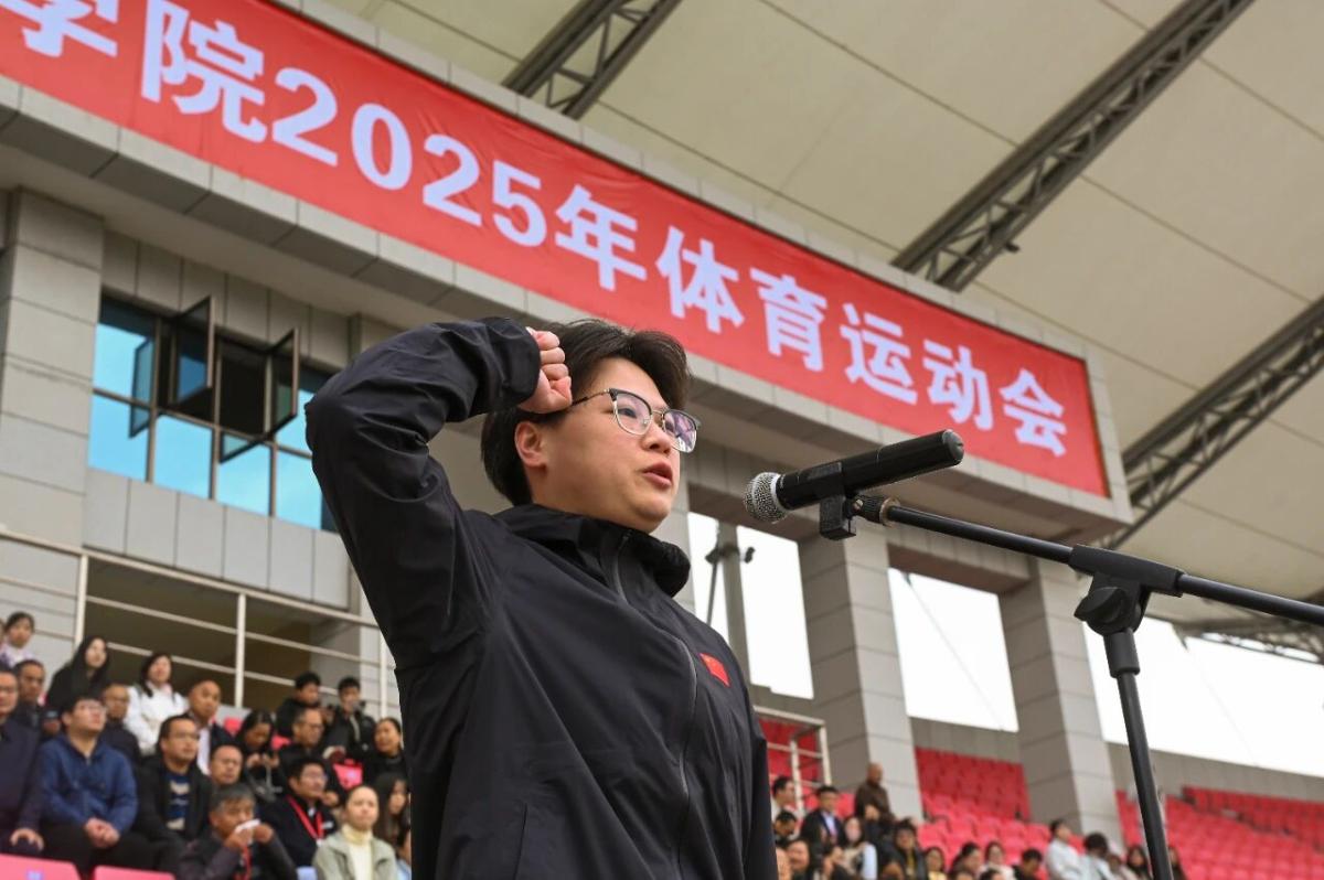 在庄严的升国旗仪式后,校长翁波作讲话。他强调,体育是综合国力与国家软实力的重要体现,学校始终坚持“五育并举”,积极推动民族传统体育与现代体育融合发展,近年来在各类体育赛事中屡创佳绩。他希望,全体运动员发扬拼搏精神,赛出风格、赛出水平;裁判员公正执裁,维护比赛的公平与秩序;全体师生积极投身体育锻炼,养成健康生活习惯,将赛场上的激情与坚韧融入日常学习与工作中。