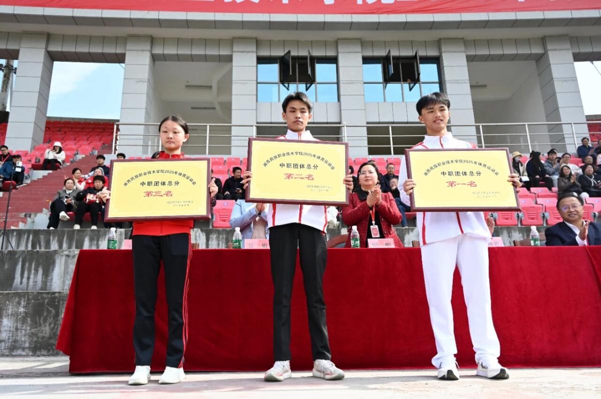 闭幕式上,裁判长李可宣布了本届运动会各类团体奖项的获奖单位。其中,机电工程学院 、信息与智能学院、旅游管理学院荣获最佳组织奖;机电工程学院摘得中职团体总分第一名;现代农业学院斩获高职女子组团体总分第一名;交通工程学院包揽高职男子组及高职组团体总分双料第一名;公共课部工会则赢得教职工团体总分第一名。